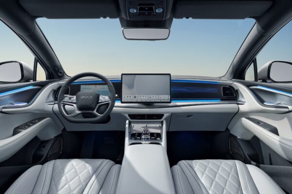 Interior BYD SEALION 7 dirancang dengan sentuhan dinamis, keseimbangan sempurna, dan ruang lapang, menciptakan pengalaman berkendara yang menyatu dan imersif.